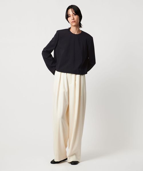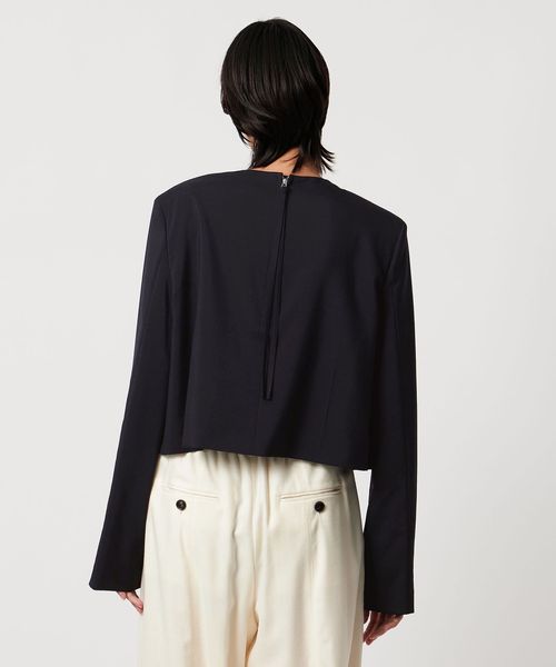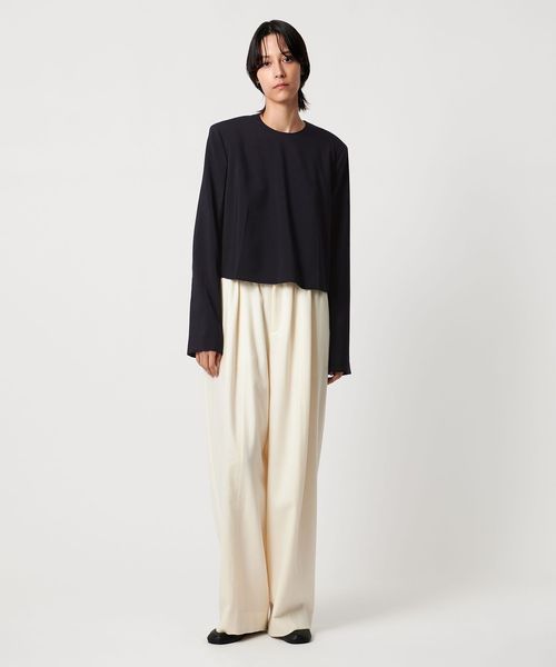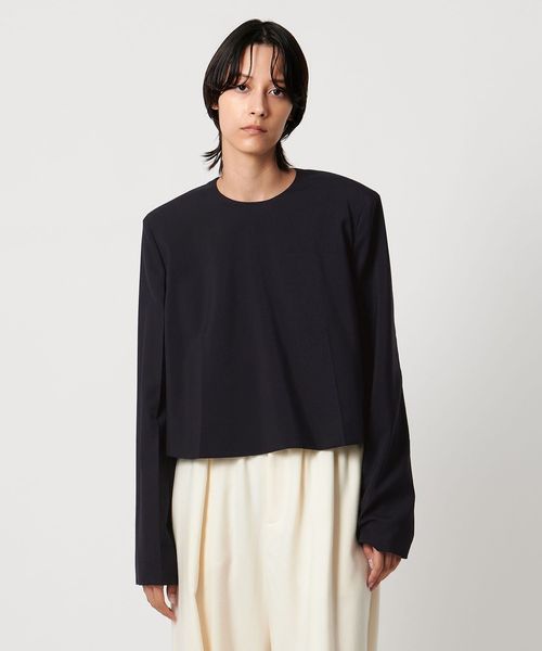 モードな着こなしが叶う、シンプルなパワーショルダーブラウス