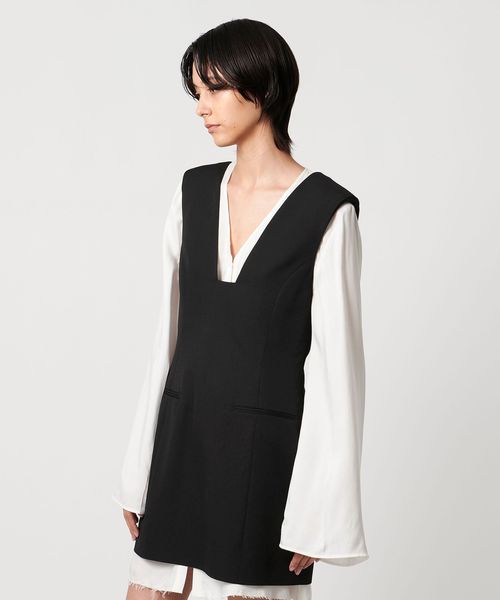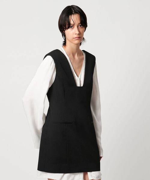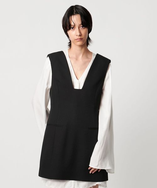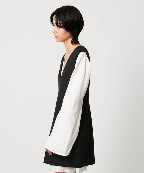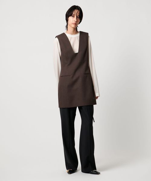 <AEWEN MATOPH>でご用意のある、Vネックワンピースとのレイヤードは丈が程よく重なり、新鮮なコーディネートをお楽しみいただけます。