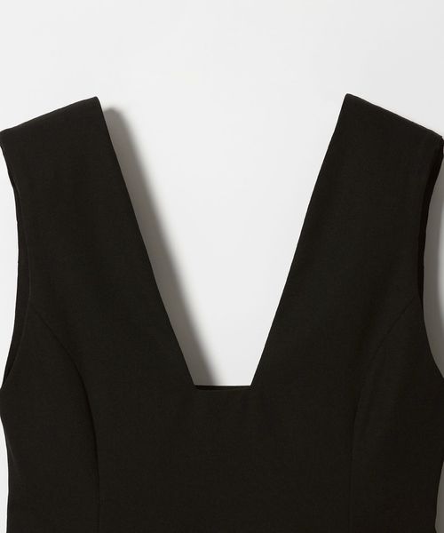 シャープなグラスネックが目をひく、ノースリーブのミニワンピース。