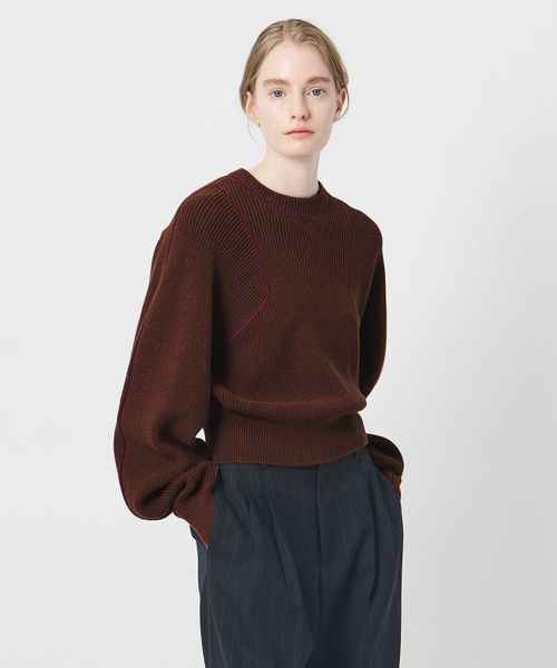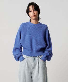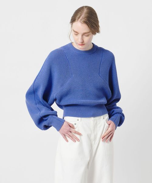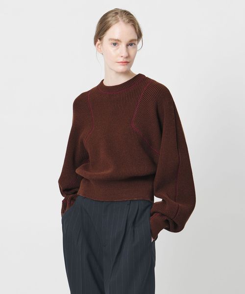 ボリューム感のあるシルエットと、すっきりと短めの着丈バランスが魅力のニットプルオーバー。