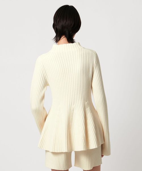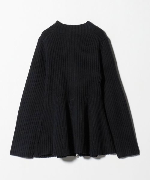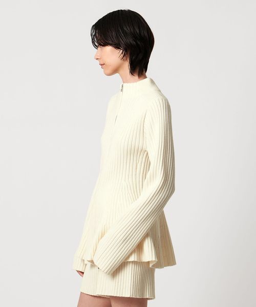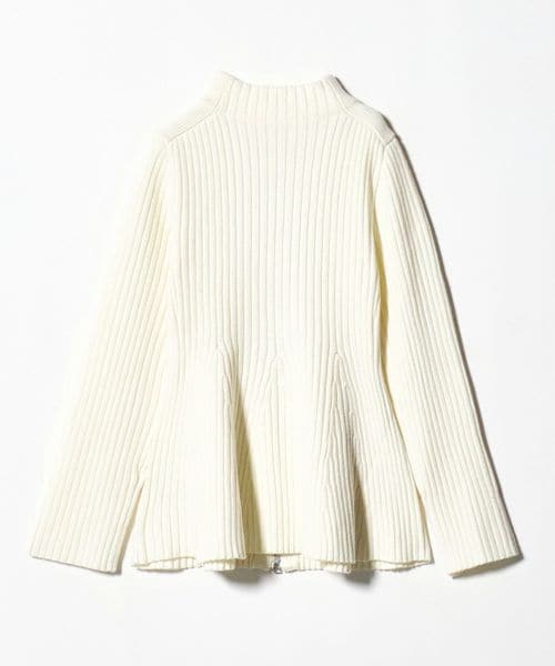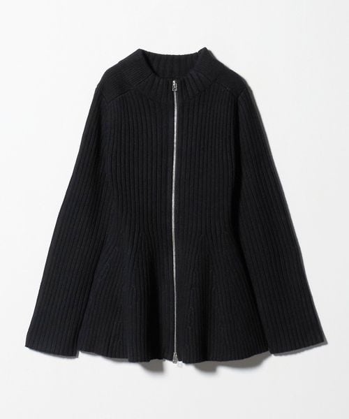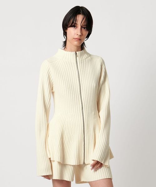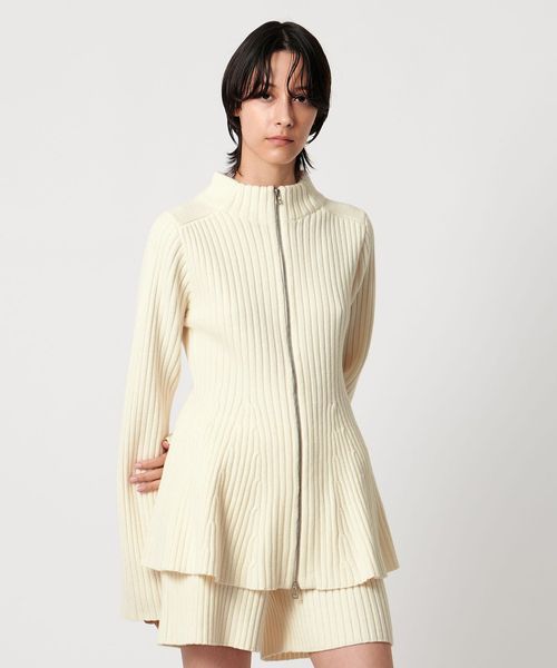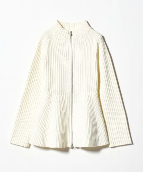 ウエストシェイプのペプラムシルエットが女性らしい、ジップアップニットジャケット。