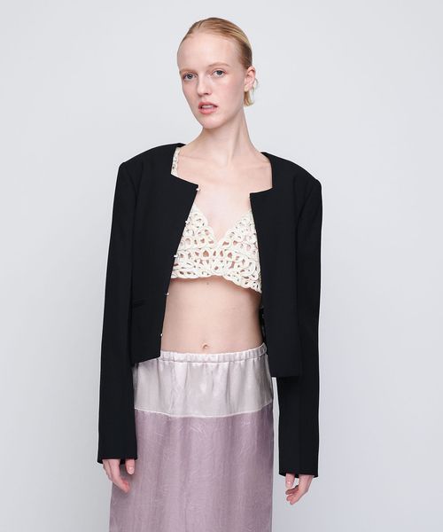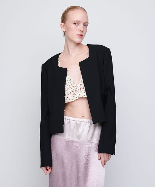 ジャケットやデニムブルゾンのインナーとして、刺繍をちらりとのぞかせるのもおすすめ。