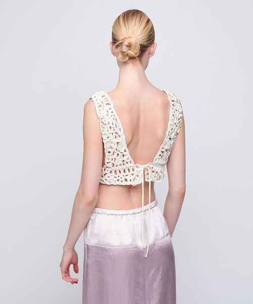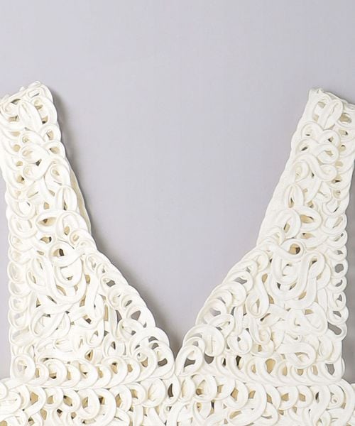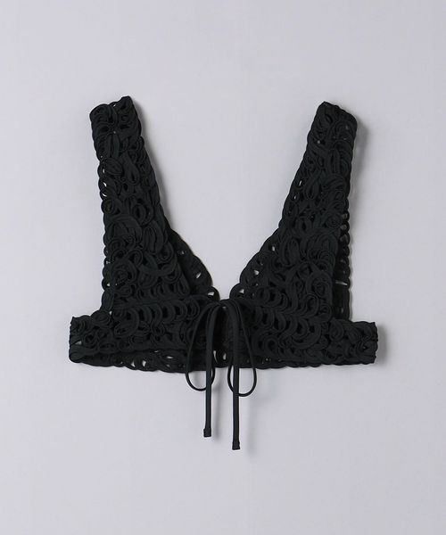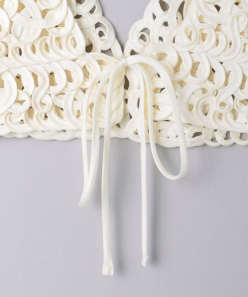 背中のリボンを結んで着用でき、サイズの調整も可能です。