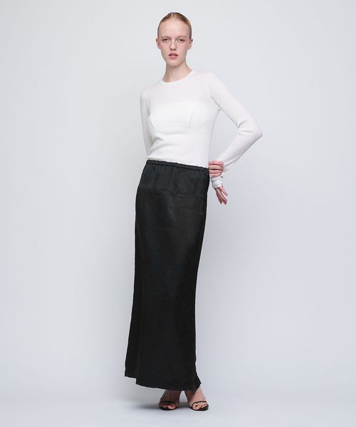 ウエストのドッキングデザインが特徴のロング丈タイトスカート