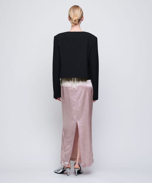 バックスタイルは深めのスリットあきで抜け感をプラスしています。