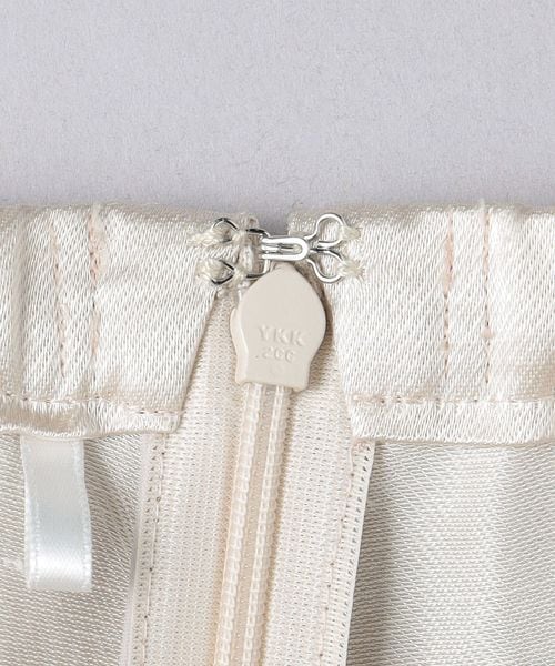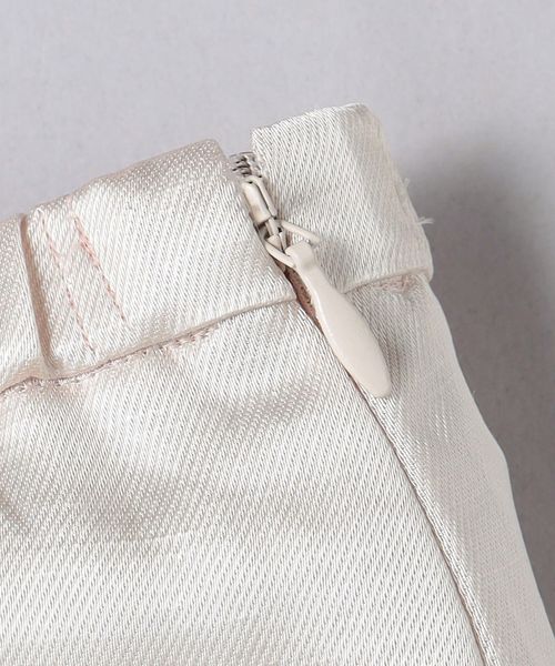 細めのウエストゴムと左脇のファスナーあきで腰周りをすっきりと仕上げつつリラックスしたはきごこち。