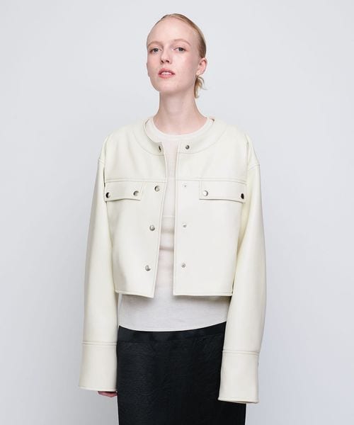 ショート丈のアウターはバランスがとりやすく、ボトムを選ばず着まわしが楽しめます。