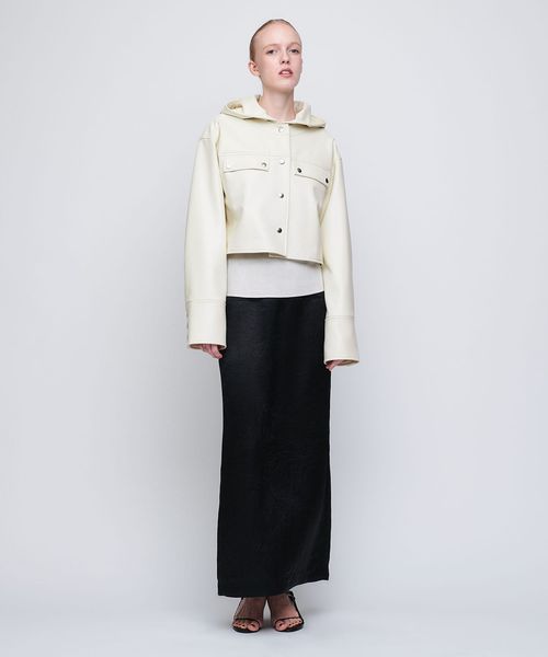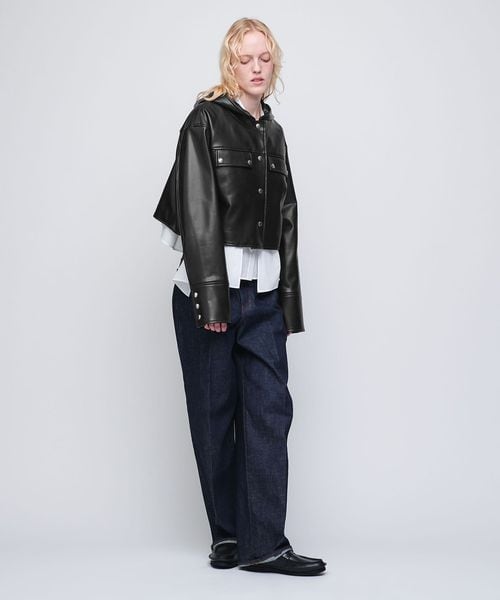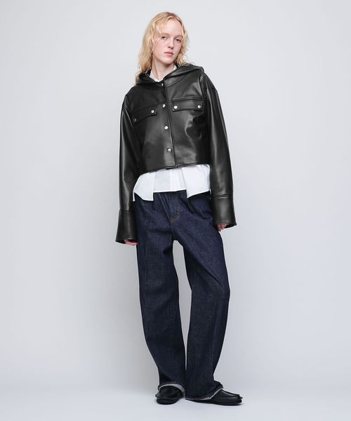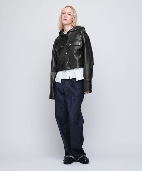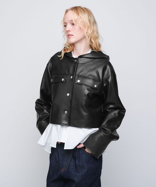 <AEWEN MATOPH>レザーライク フード ブルゾン
