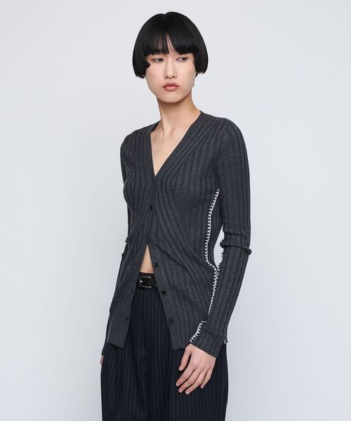 縦長ラインを強調する長めの着丈とリブデザインがシルエットを美しく見せてくれる一着。