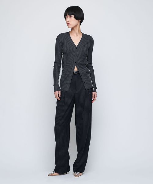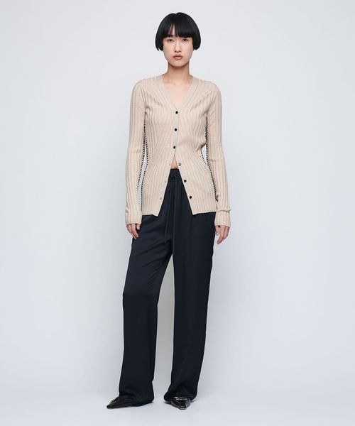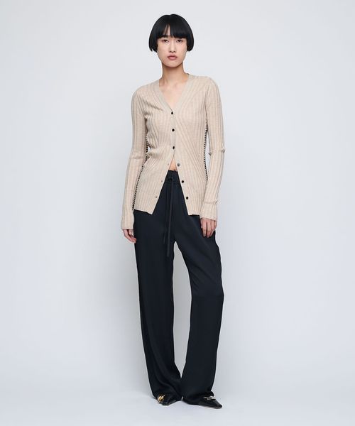 きれいめなスラックスや大人カジュアルなデニム合わせなどボトムスを選ばずに着まわせるカーディガン。