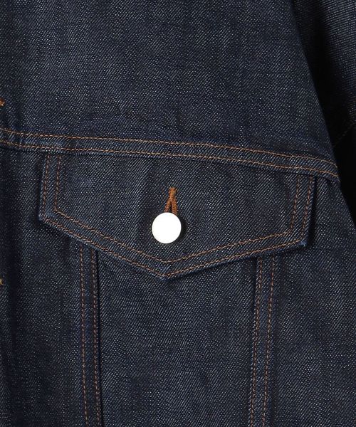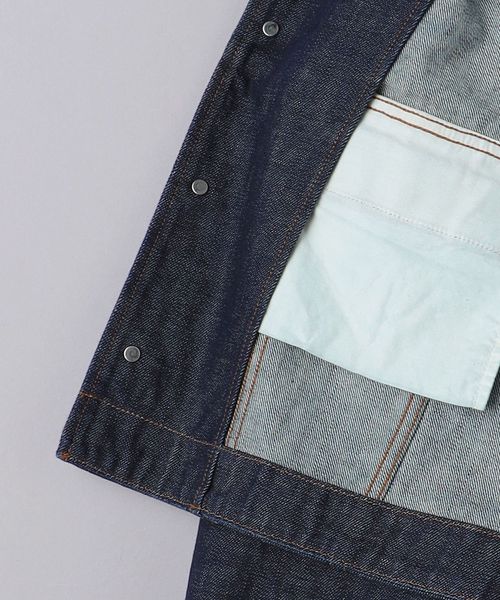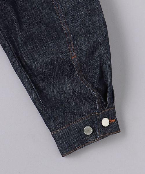 シルケット加工のデニムに、ドライオゾンウォッシュ加工を施したきれいめな仕上げ。