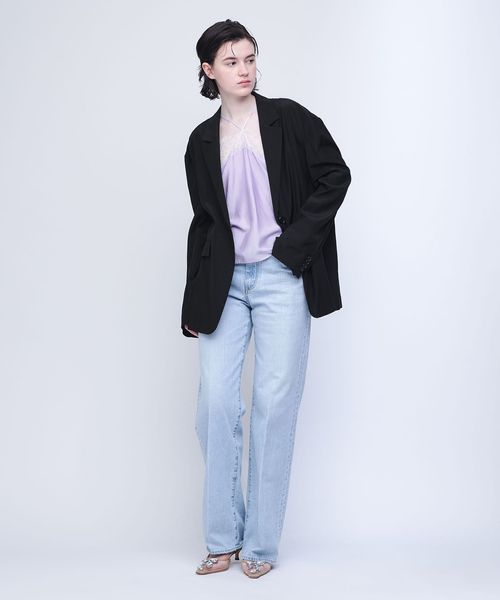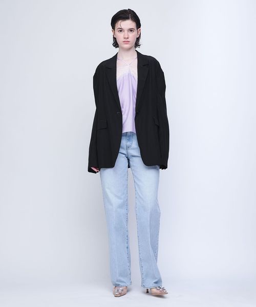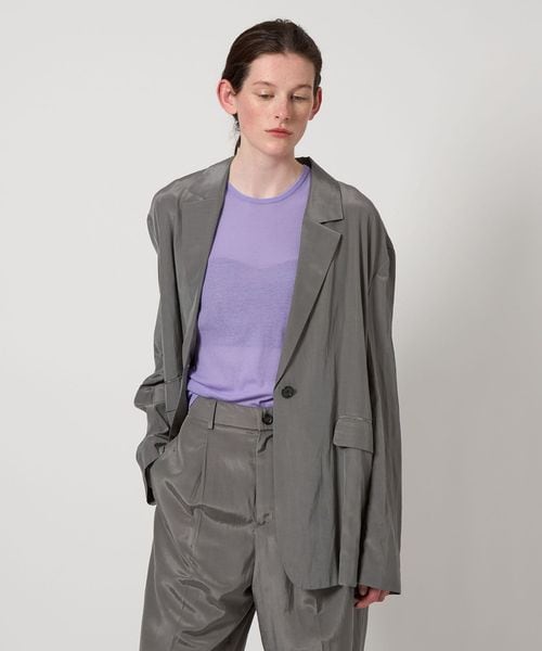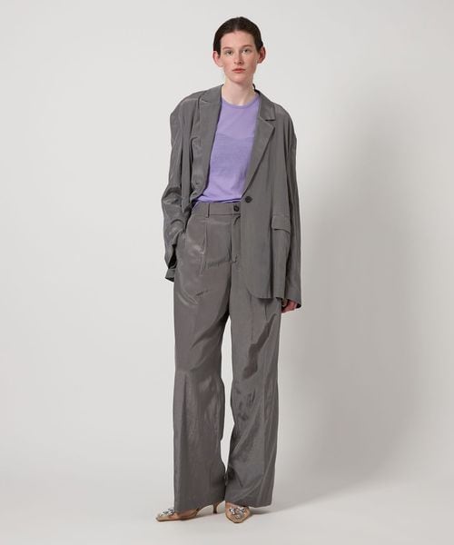 メンズライクなワイドシルエットと裏地なしの軽い素材感でラフに着用が可能。
