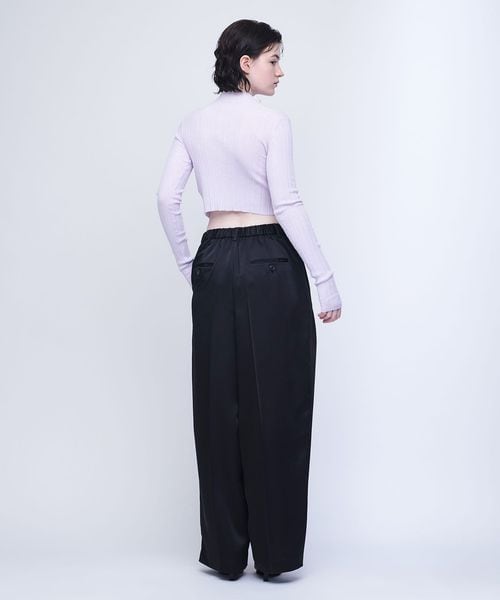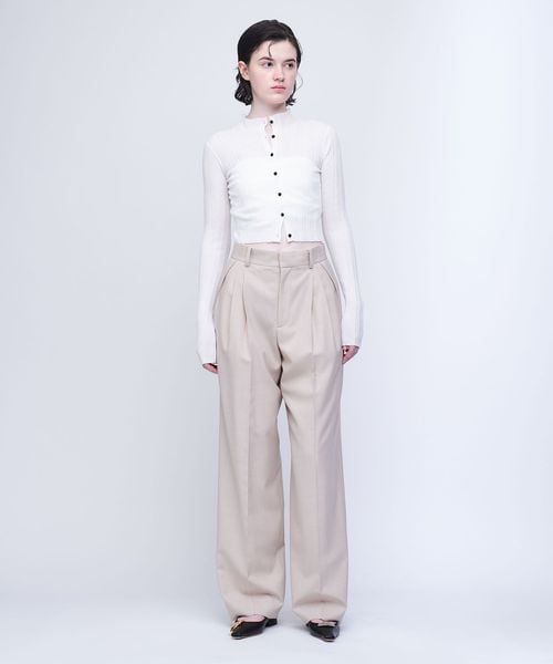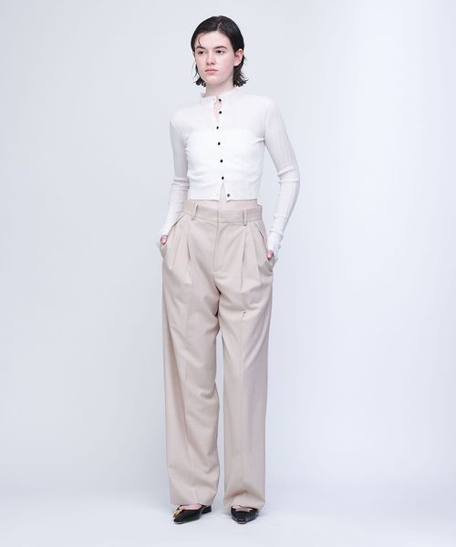 コンパクトなニットはワイドパンツやデニム合わせがおすすめ。