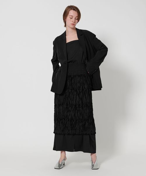 前裾は深めのスリットあきでシンプルながらもエッジのきいたデザイン。