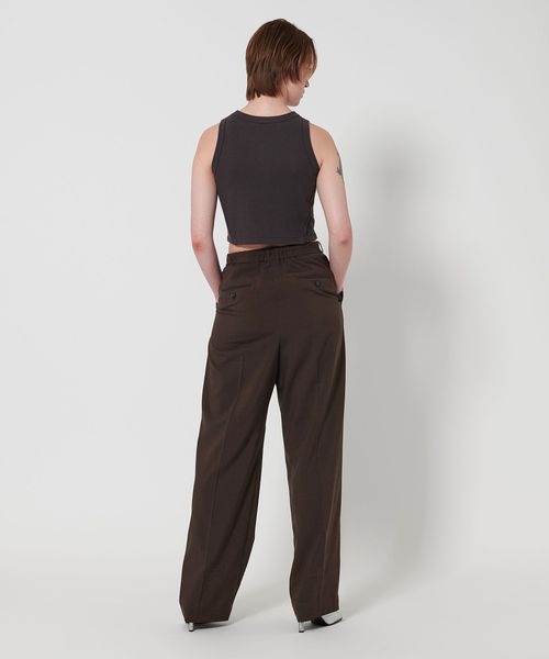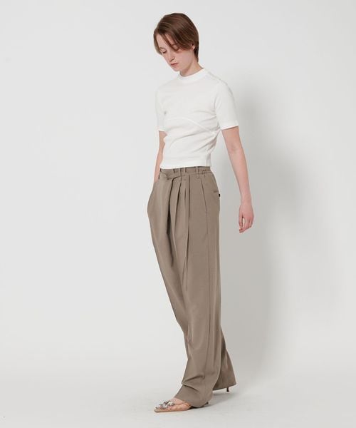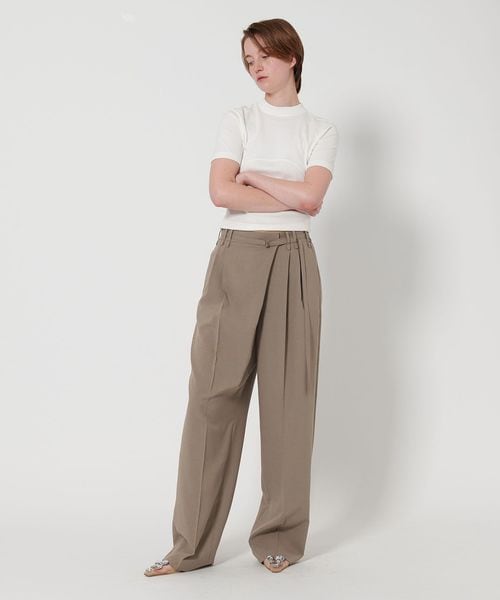 フロントのイレギュラータックがポイントのワイドパンツ
