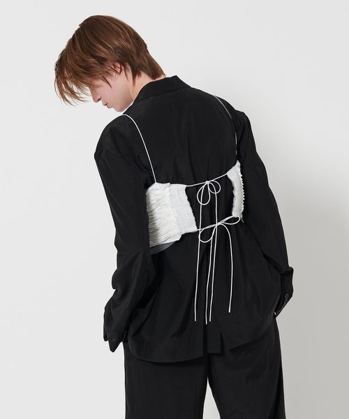 コンパクトな身頃に華奢な肩紐がフェミニンな印象。