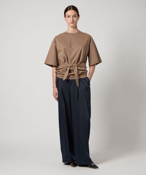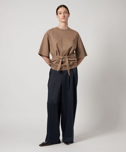 リボンのような後裾をウエストに巻き、アレンジが楽しめるデザインです。