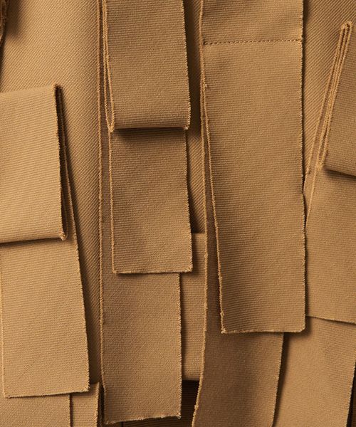フリンジは、複雑で動きのある表情を出すため、一枚ずつ丁寧に縫い付けて仕上げています。