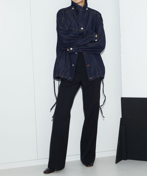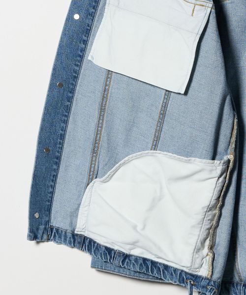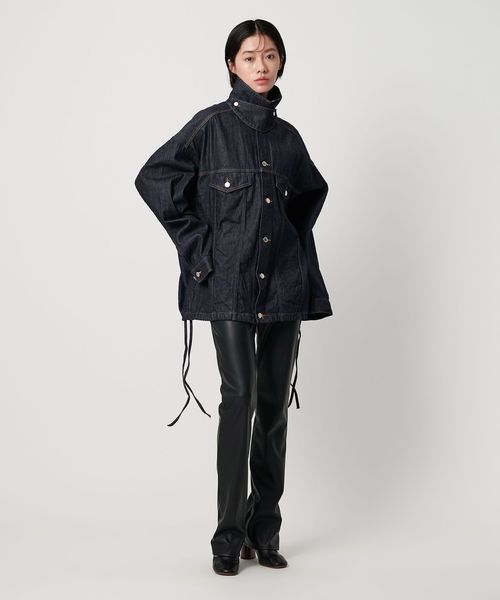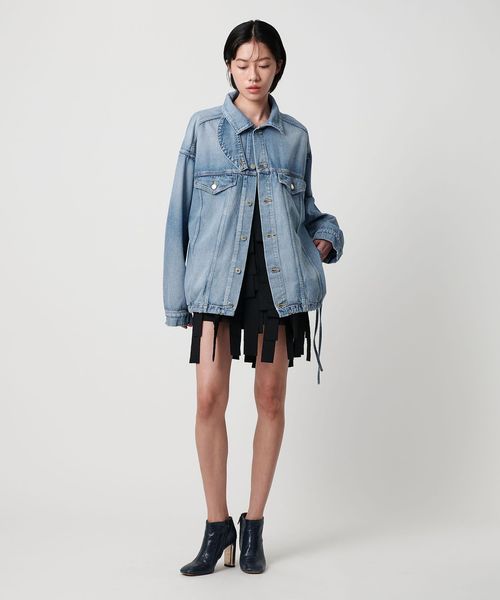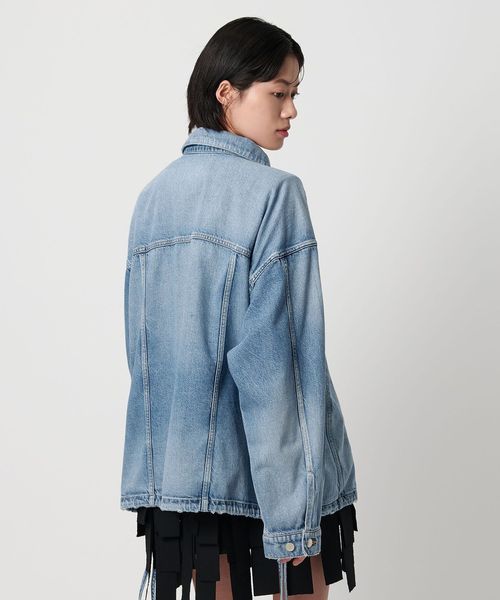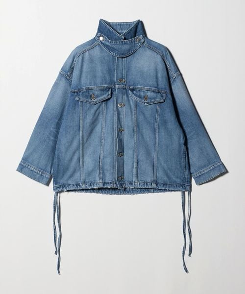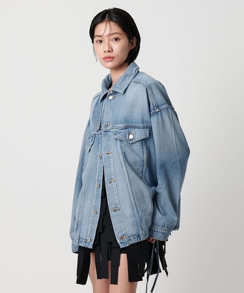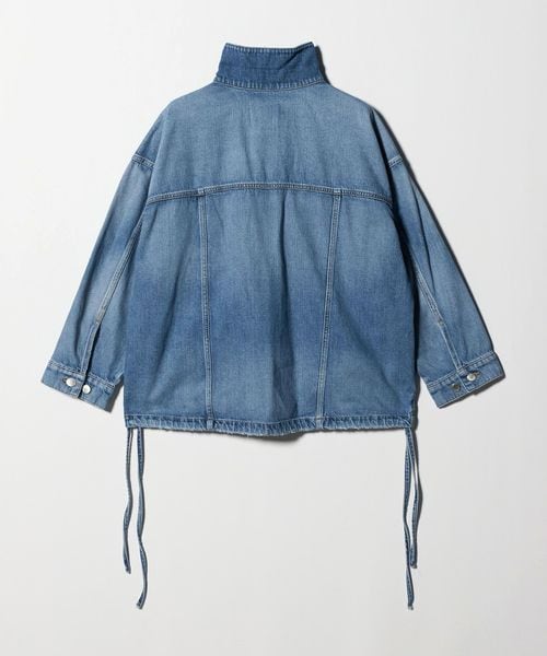 オーバーサイズのワイドシルエットに、裾ドローストがポイントのデニムブルゾン。