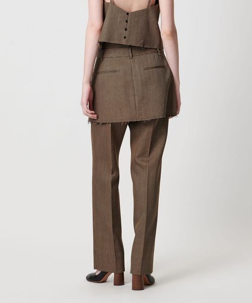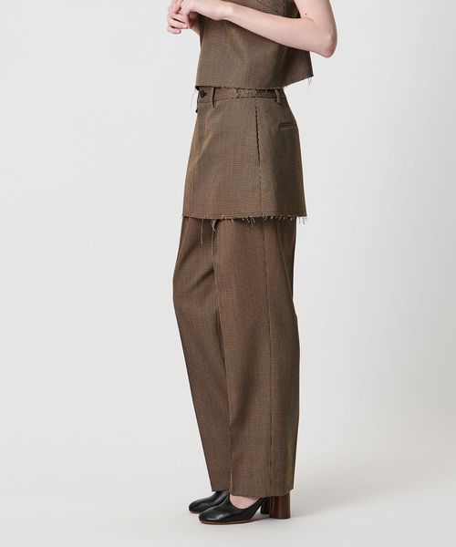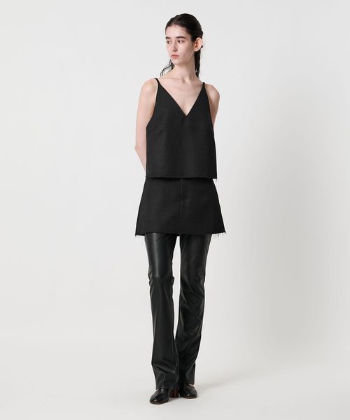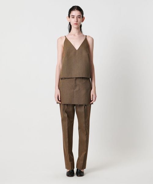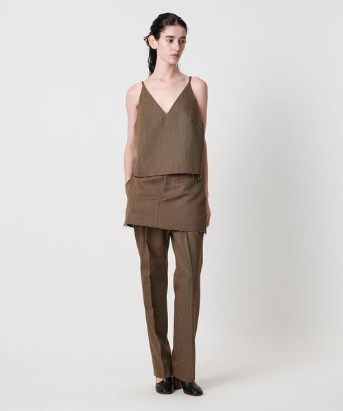 お手持ちのパンツに重ねるのはもちろん、同素材のスカート・パンツ・キャミソールのご用意があり、セットアップで揃えていただくのもおすすめです。