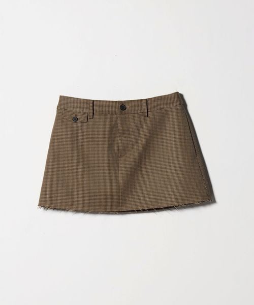 上品な風合いの素材でありながら、カットオフした裾がラフな雰囲気のAラインシルエットのミニスカート。