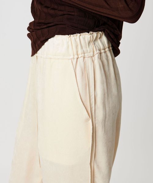 ウエストは一周幅広のゴムで仕上げ、リラックスした履き心地でありながらカジュアル過ぎないバランスが嬉しい一着です。