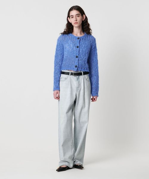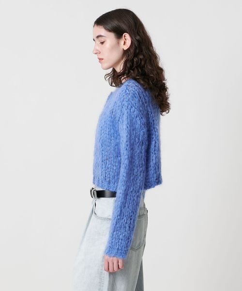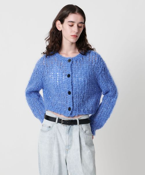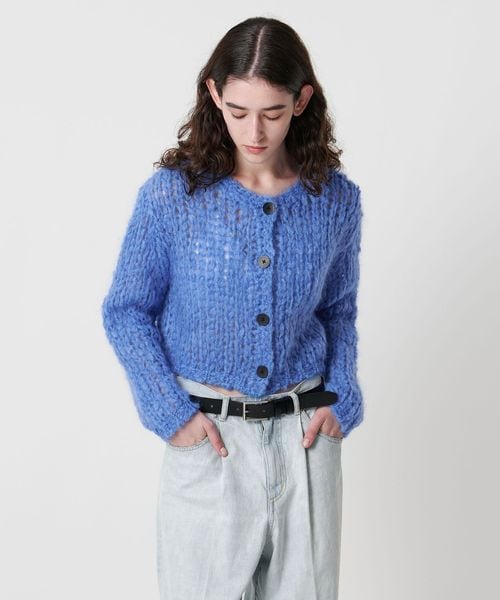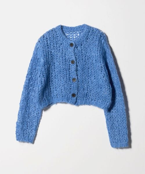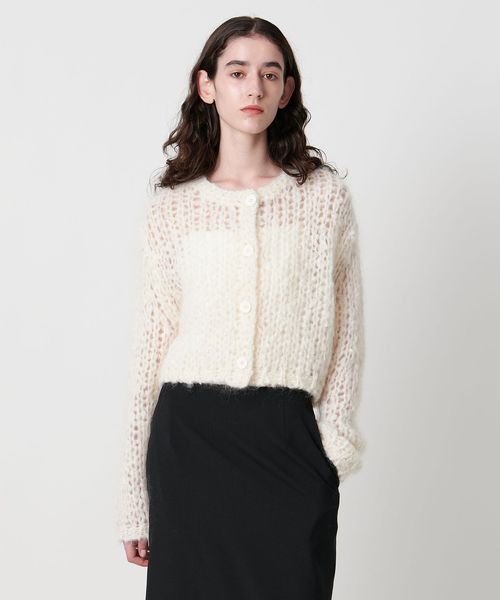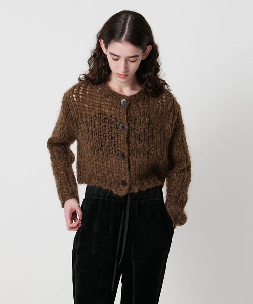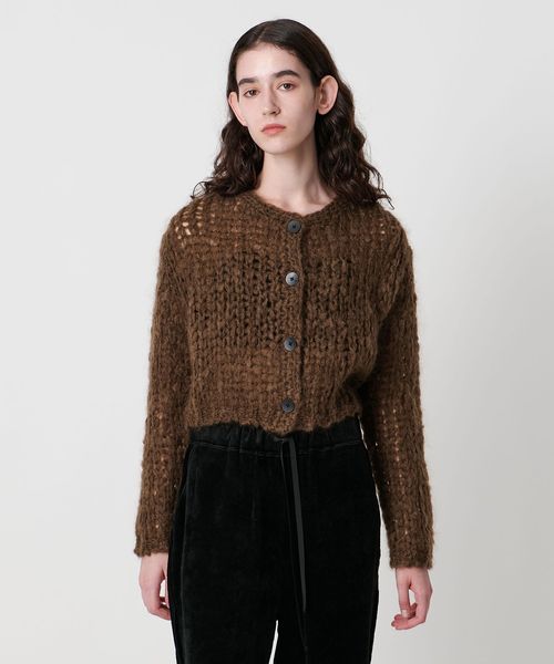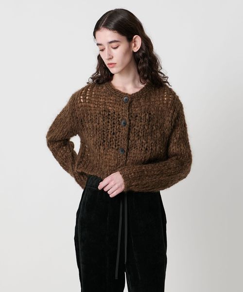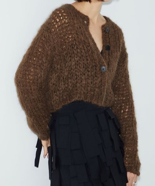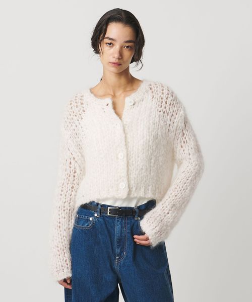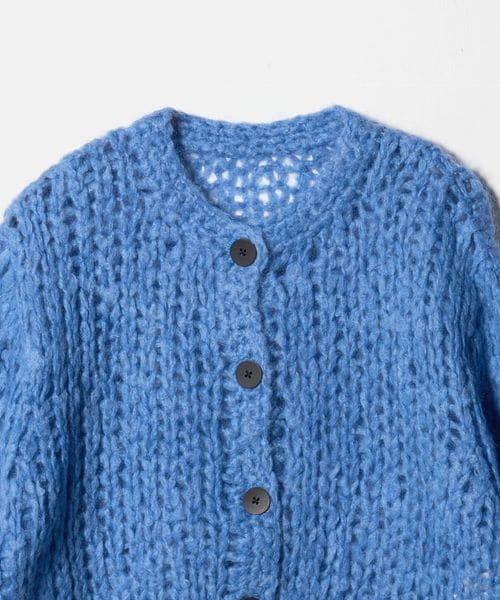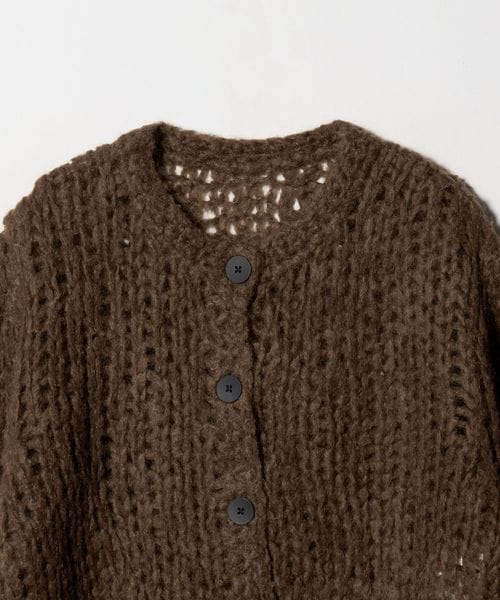 柔らかな膨らみのある糸でざっくり編み上げたニットカーディガン。