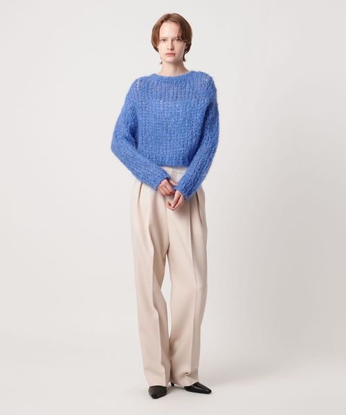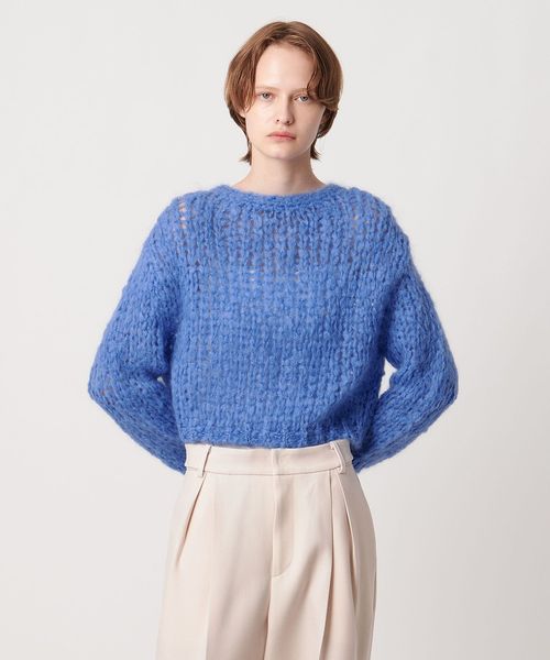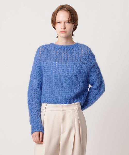 2G針抜き天竺編地で手編み風にざっくりと編み上げました。