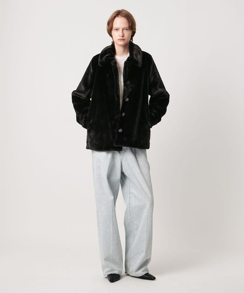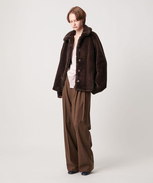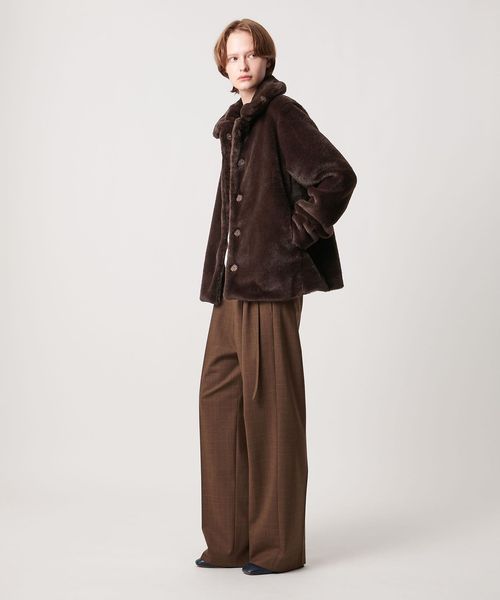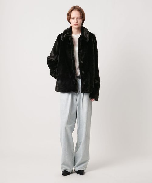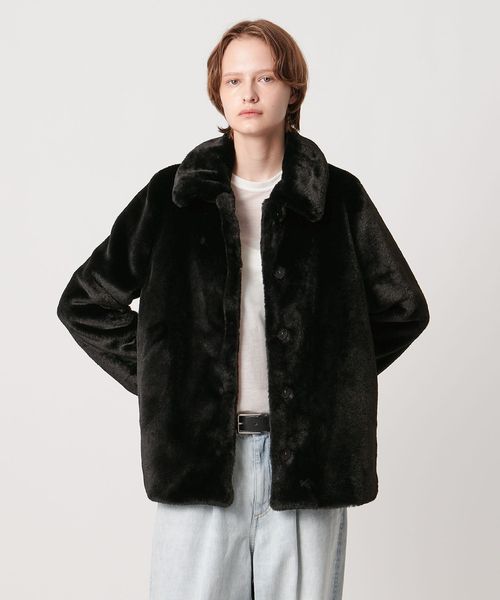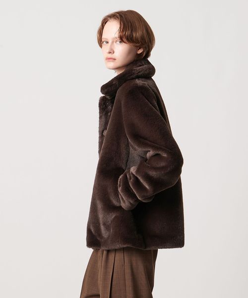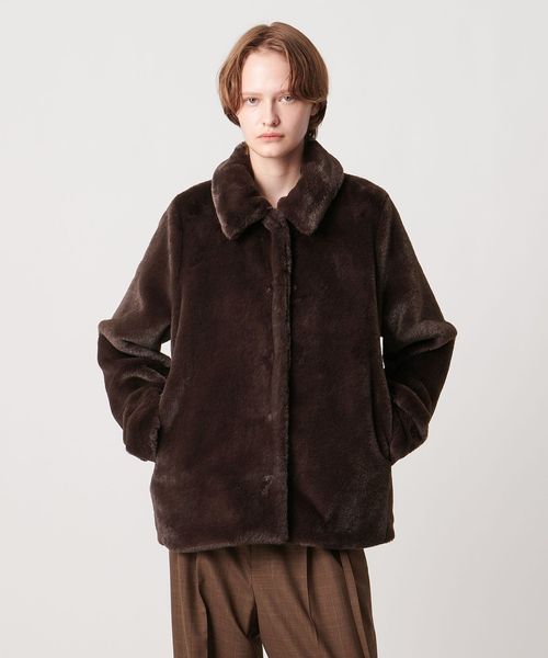 ふわふわの肌触りがたまらない、大人のフェイクファーコート。