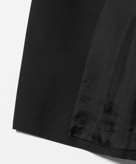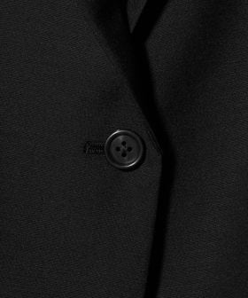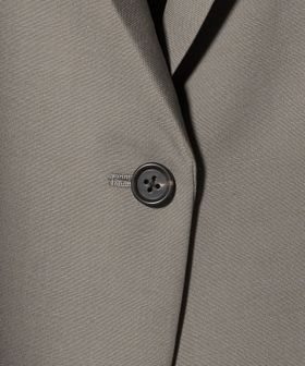 シンプルな一つ釦に、斜めにカットした前端のラインが作る開きで、さりげない抜け感も演出してくれます。