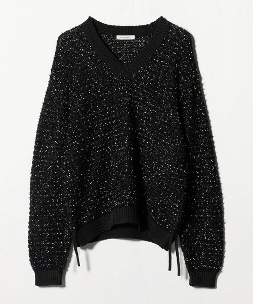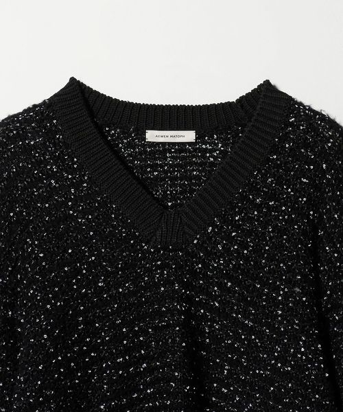 <AEWEN MATOPH>ハートスパンコール シャーリングVネックニット