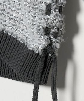 華やかなスパンコール糸を使用して編み上げた、ミドル丈のVネックニット。