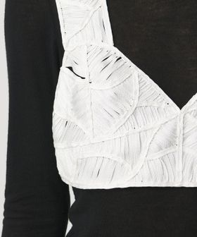 モード感漂う、シャープなハートネックのビスチェ。