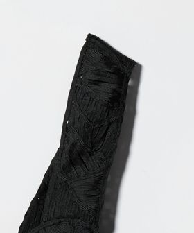しなやかなレーヨンの平コードを使用し、全面刺繍で仕上げました。