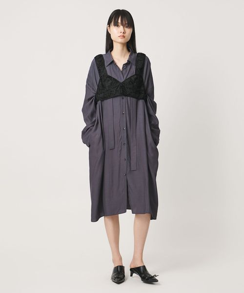 後ろはリボンを結んで着用し、レイヤードアイテムに合わせてサイズの微調整も可能。