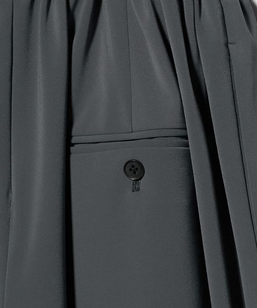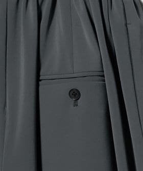 タックギャザーを寄せたパンツ部分は、たっぷりとしたワイドシルエットがリラックスムードで着用いただけます。
