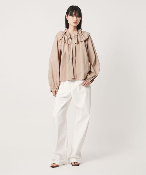 着るだけで目をひくフェミニンなブラウスは、マニッシュなきれいめボトムからカジュアルなデニムまで好相性。