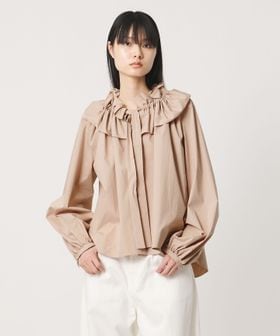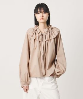 たっぷりとしたボリューム感と、肩にかかる華やかなフリルが魅力のブラウス。