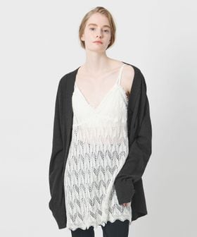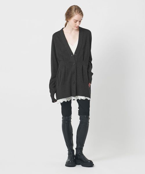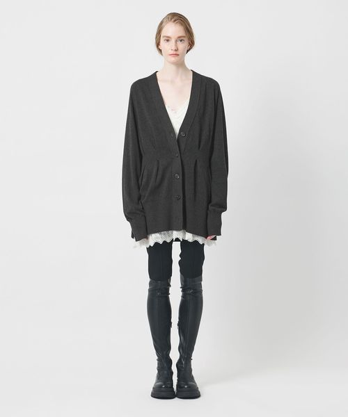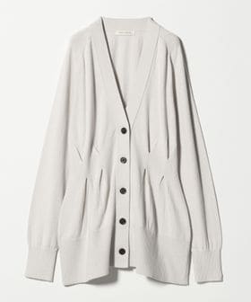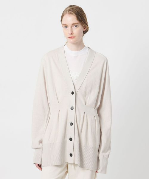 ウエストの大胆なタックディテールがアクセントのニットカーディガン。