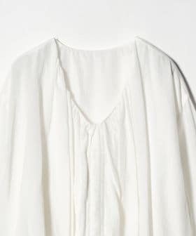 1Vネックをフロントにして、コードを絞ってアクセントに。ギャザーと着丈のアレンジをお楽しみいただけます。