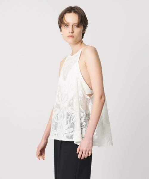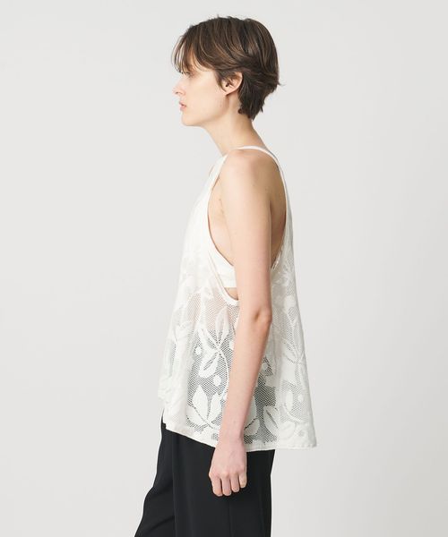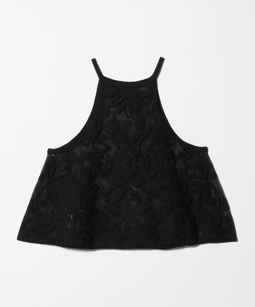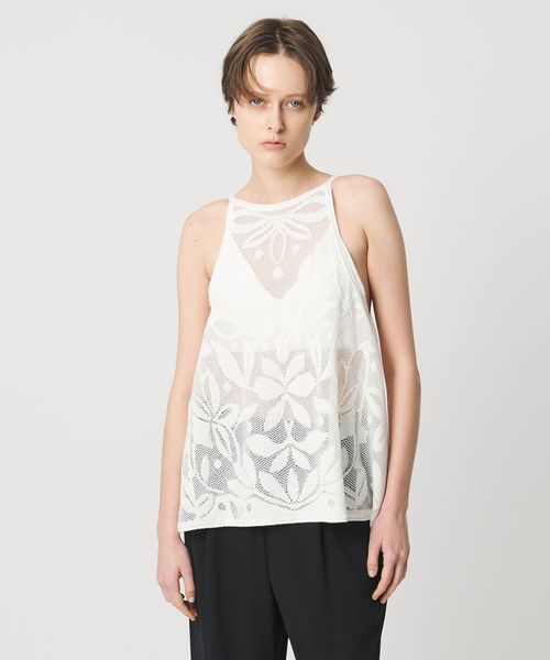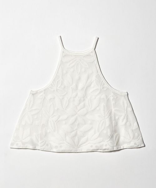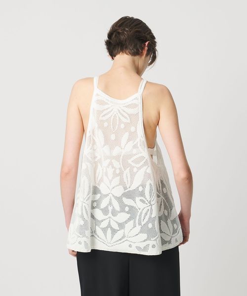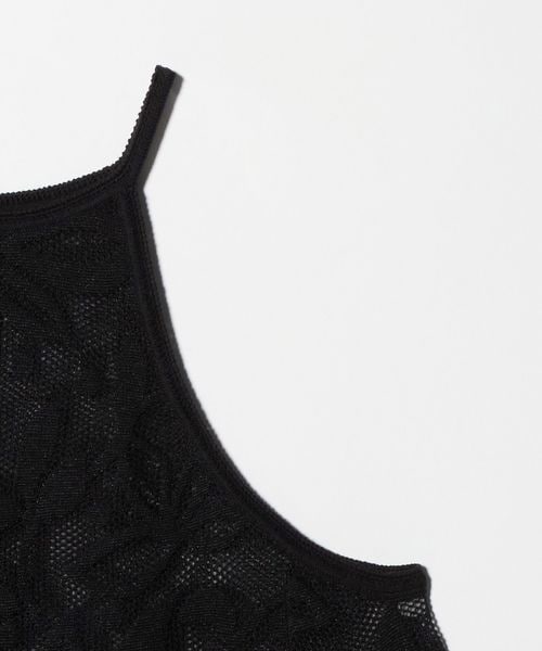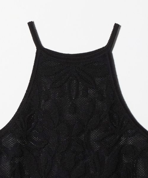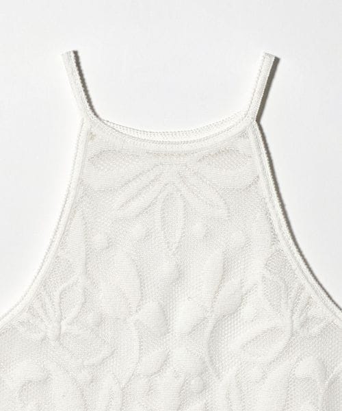 大胆なカッティングと、オリジナルのメッシュジャガード柄がポイントのニットキャミソール。