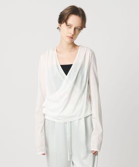 カシュクールデザインのカットソーカーディガン。