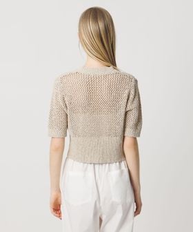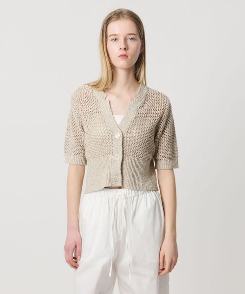 MIX感のある素材表情が特徴の、メッシュ編み半袖カーディガン。