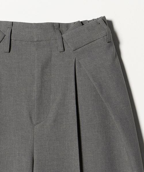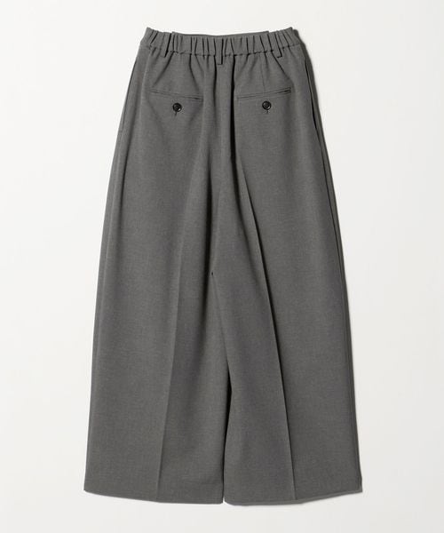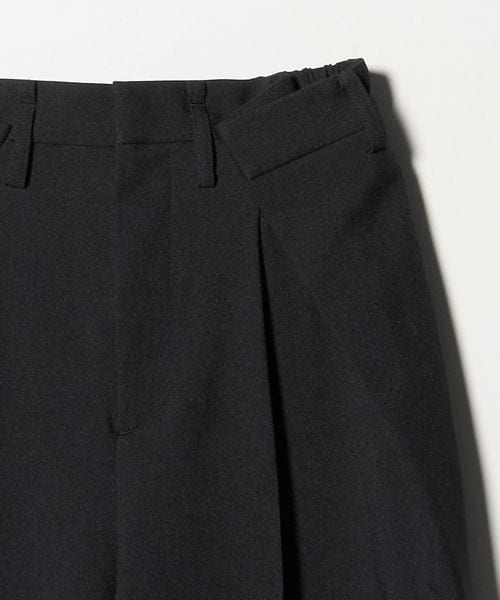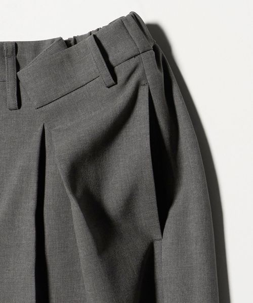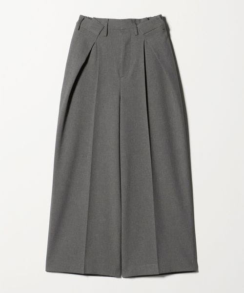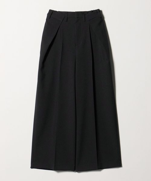 大胆なウエストのイレギュラータックがポイントのワイドパンツ。