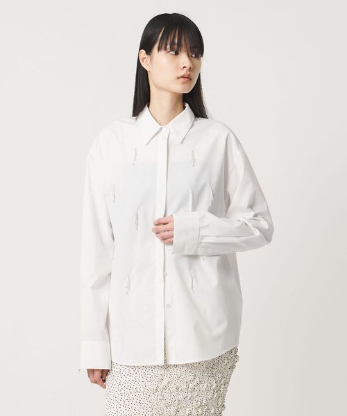 手付けのビーズフリンジを施した、華やかなレギュラーカラーのシャツ。