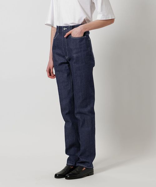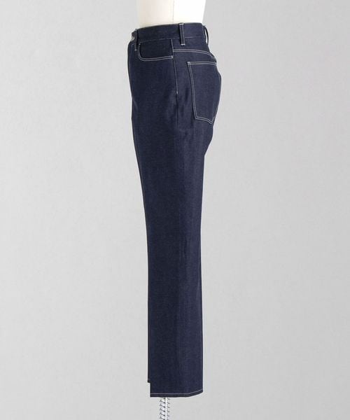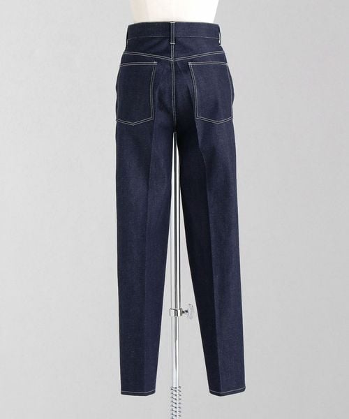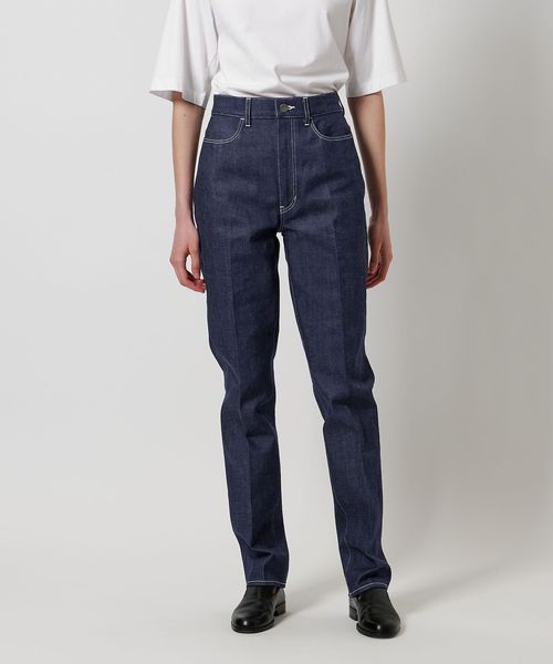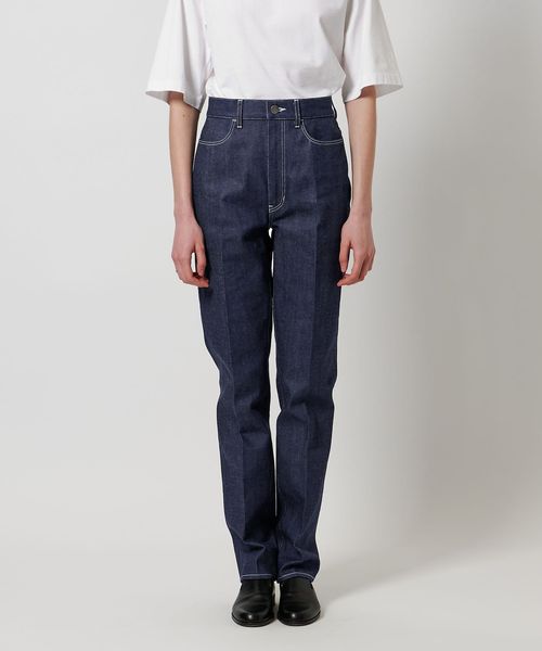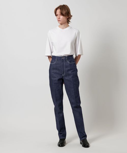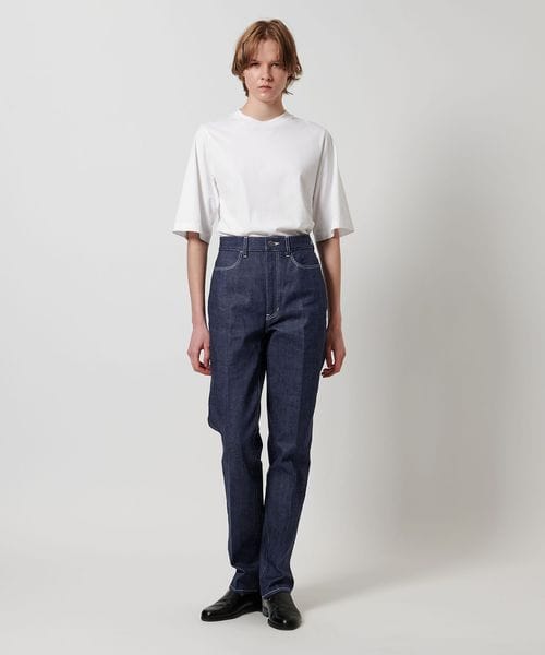 スラックスのような細身テーパード、センタープレス仕上げのシャープな印象のリジットデニムです。