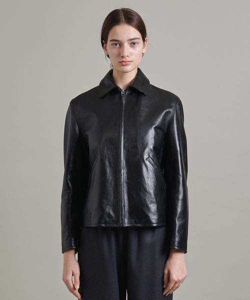 ディテールをすっきりとさせることでレザージャケット独特の重厚さをまろやかにしました。