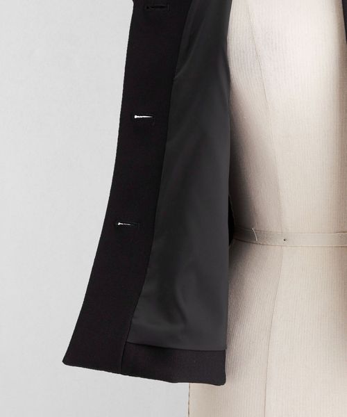 表は毛、裏はポリエステル糸で組織されたダブルクロス素材。