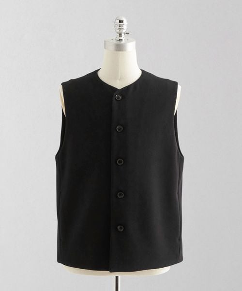 コンパクトなクルーネックにボタンがアクセントになったミニマルなベスト。