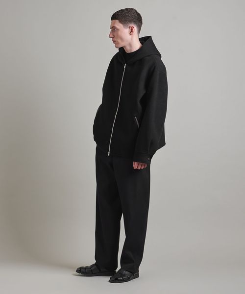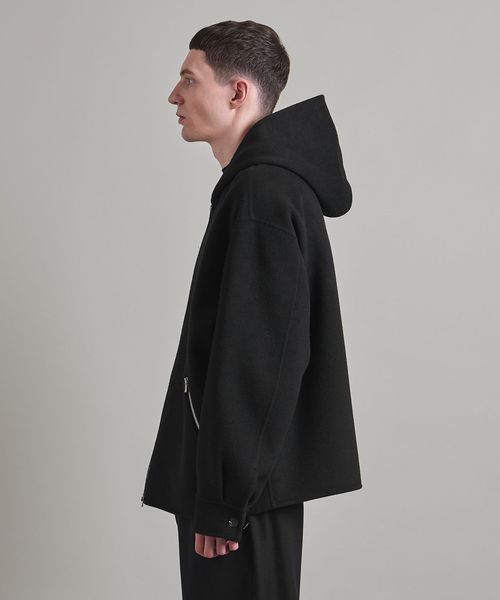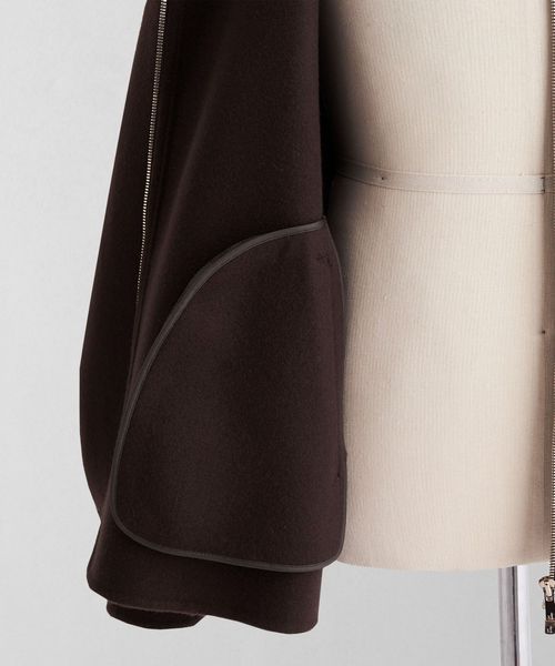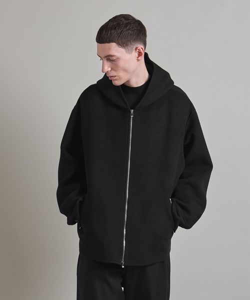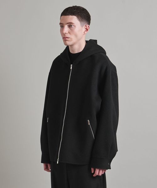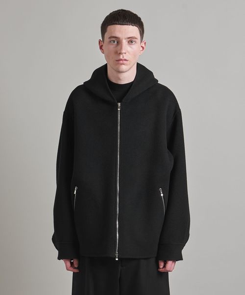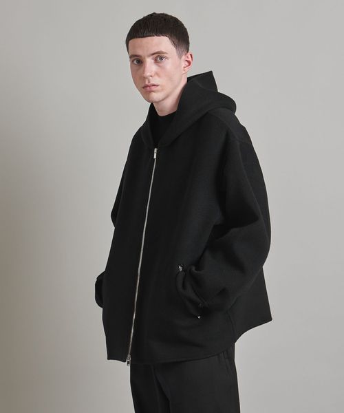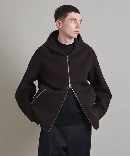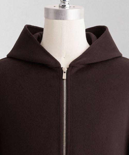 上品な素材でお作りしたスポーティーなフードジップデザインがポイント。
